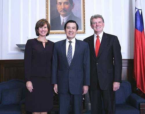 美國愛達荷州州長歐士杰伉儷一行,下午由外交部次長侯清山陪同,前來總統府晉見總統,國安會副秘書長李海東也在座。