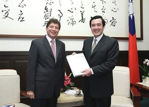 法國在台協會主任包美城,上午由外交部次長侯清山陪同,前來總統府晉見總統,國安會秘書長蘇起也在座。