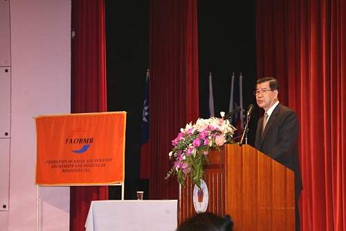 蕭萬長副總統今天上午出席在陽明大學國際會議中心舉辦的「第20屆亞太生化年會」開幕典禮,以英文致詞,代表中華民國政府與人民歡迎訪賓遠來與會,並預祝年會圓滿成功。