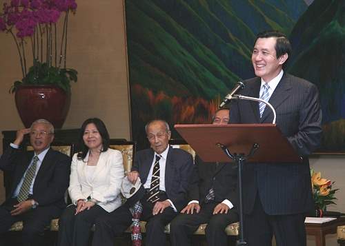 馬英九總統今天上午在總統府接見抗日親屬協進會會長林光輝等人,對於能在台灣光復63週年前夕與大家見面感到非常欣慰,並與在場親屬們共同勉懷先人的英勇事蹟。