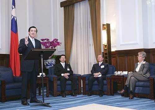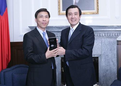 馬英九總統今天下午在總統府接見全國優良商人、優良外國駐華商務單位暨優良外商負責人,肯定並感謝他們長期為台灣經濟發展所作的努力與貢獻。