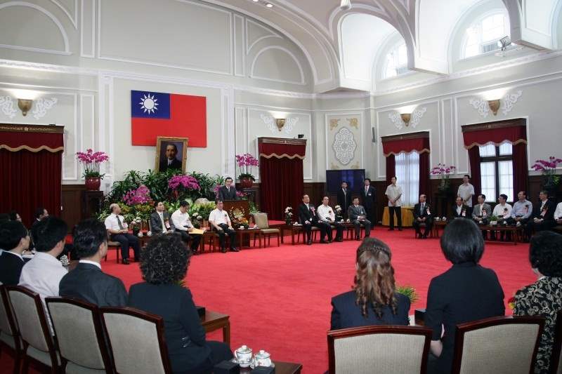 馬英九總統今天上午在總統府接見「第16屆中華建築金石獎」得獎業者代表,代表政府與人民祝賀得獎者,也期盼大家與政府一起努力打拼,在景氣恢復後,抓住機會、大展鴻圖。