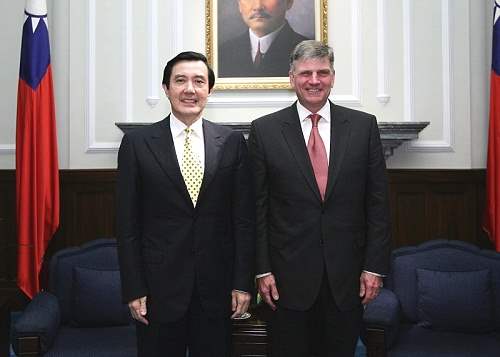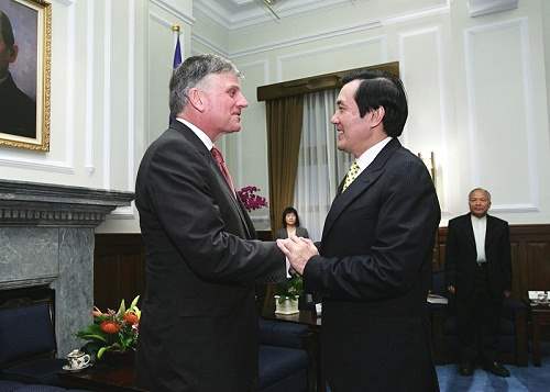 馬英九總統今天下午在總統府接見葛理翰佈道團(Billy Graham Evangelistic Association, BGEA)會長葛福臨(Franklin Graham)牧師,對他的來訪表達歡迎之意。