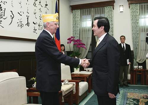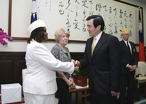 美國韓越戰退伍軍人協會總會長哈伯納夫婦及韓越戰退協婦女會總會長Charlene Kee,上午由行政院退輔會主任委員高華柱陪同,前來總統府晉見總統。國安會副秘書長何思因也在座。