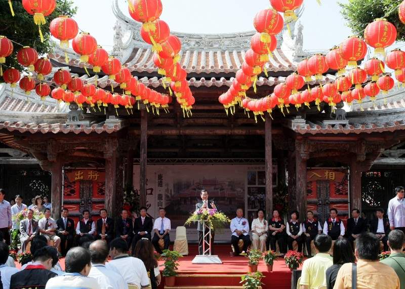 副總統指出,鹿港龍山寺規模宏大、構造精美,是台灣保存最為完整的古代寺廟,300多年來在台灣人民心中不但是信仰中心,更已是歷史重鎮,因此有「台灣紫禁城」美譽,民國72年更被內政部指定為國家第一級古蹟,是我們極珍貴的文化資產。