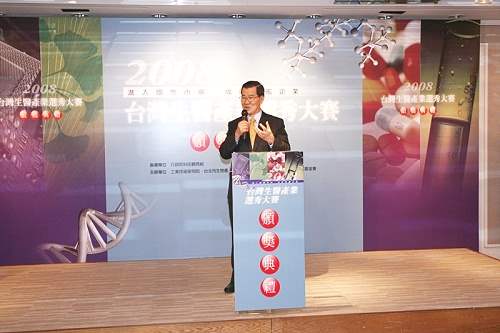 蕭萬長副總統今天下午出席台灣生醫產業選秀大賽頒獎典禮,除代表主辦單位頒發獎牌外,也對所有獲獎企業表達祝賀之意。