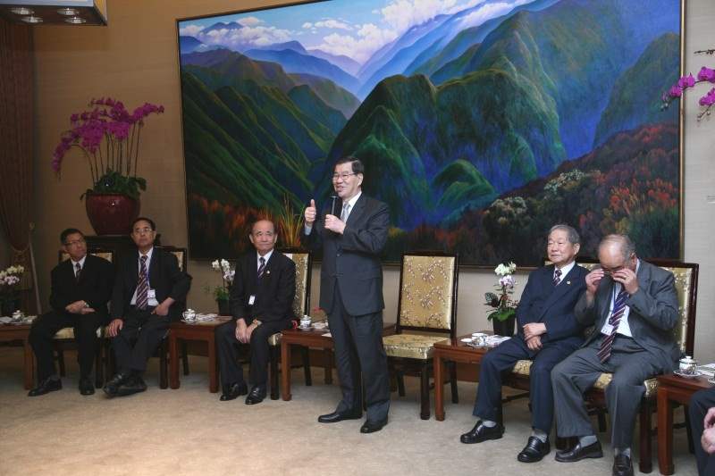 蕭氏宗親會下午由理事長蕭錫銘、榮譽顧問蕭天讚、團長蕭登波、名譽理事長蕭澄枝與蕭景田陪同,前來總統府晉見副總統。