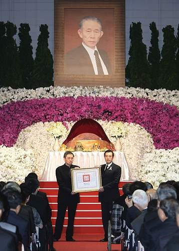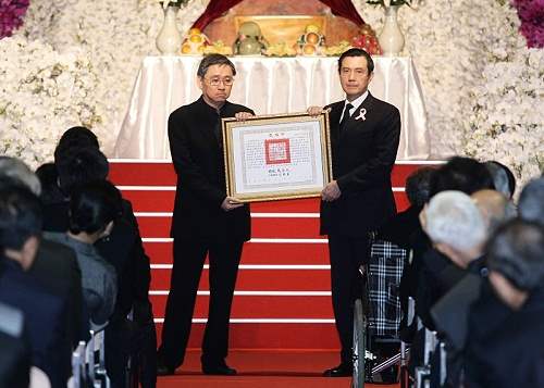 總統抵達後先向家屬致意,並觀看王創辦人生平回憶影片,續由總統府禮官宣讀總統褒揚令,總統隨後親頒褒揚令給家屬代表王文洋先生,並上台向王創辦人遺像鞠躬致意,表達追思之情。