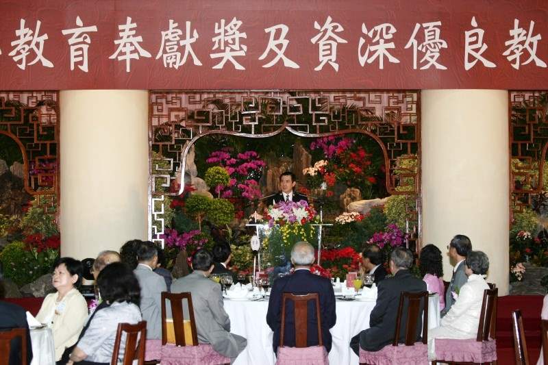 馬英九總統今天上午前往陽明山中山樓出席「97年慶祝教師節午宴」,除致詞感謝全國教師對教育的無私奉獻,親自頒贈優良教育貢獻獎座之外,並與行政院劉院長共同向全國教師們鞠躬致意,感謝他們的辛勞與付出。