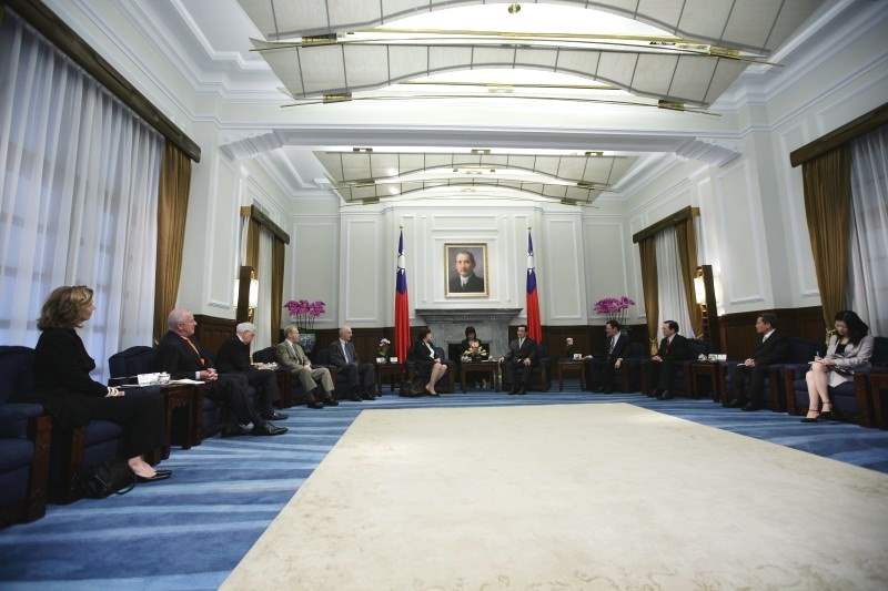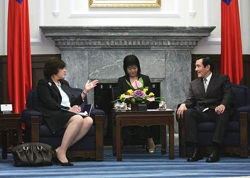 馬英九總統今天上午在總統府接見美國華府智庫「卡內基國際和平基金會」會長麥修絲(Jessica Tuchman Mathews)及研究副會長包道格(Douglas Paal)一行,對訪賓來台訪問,代表我國政府與人民表達最高的歡迎與感謝之忱。