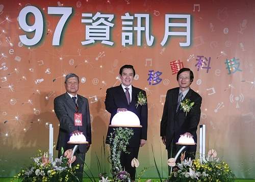 馬英九總統今天上午出席「97資訊月」開幕典禮,除為「傑出資訊人才」得獎人頒獎,並在啟動儀式後,前往主題館參觀,感受本屆資訊月主題「移動科技」的創新技術。