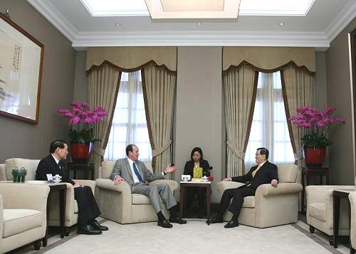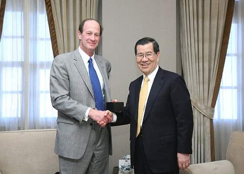 美國艾森豪獎金會會長沃夫,上午由艾森豪獎金會中華民國協會執行秘書江偉平陪同,前來總統府晉見副總統。