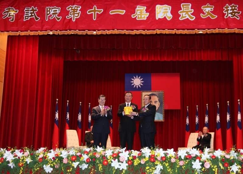 上午的交接典禮,前考試院院長邱創煥、許水德及國民黨主席吳伯雄等也在場觀禮。