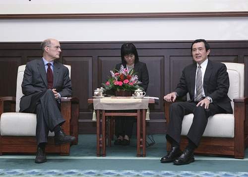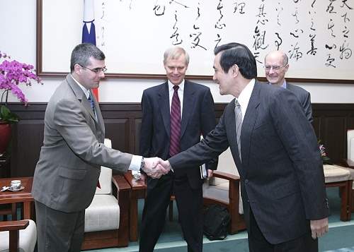 「美國布魯金斯研究院」院長塔柏特一行還包括:東北亞政策研究中心主任卜睿哲(Richard Bush)、副主任石凱文(Kevin Scott)、主任特別助理張璦玲等,上午前來總統府晉見總統,國安會秘書長蘇起也在座。