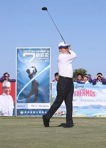 蕭萬長副總統今天上午出席第7屆總統盃業餘高爾夫隊際邀請賽開幕典禮,除致詞祝賀球賽順利圓滿,並主持開球儀式。