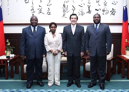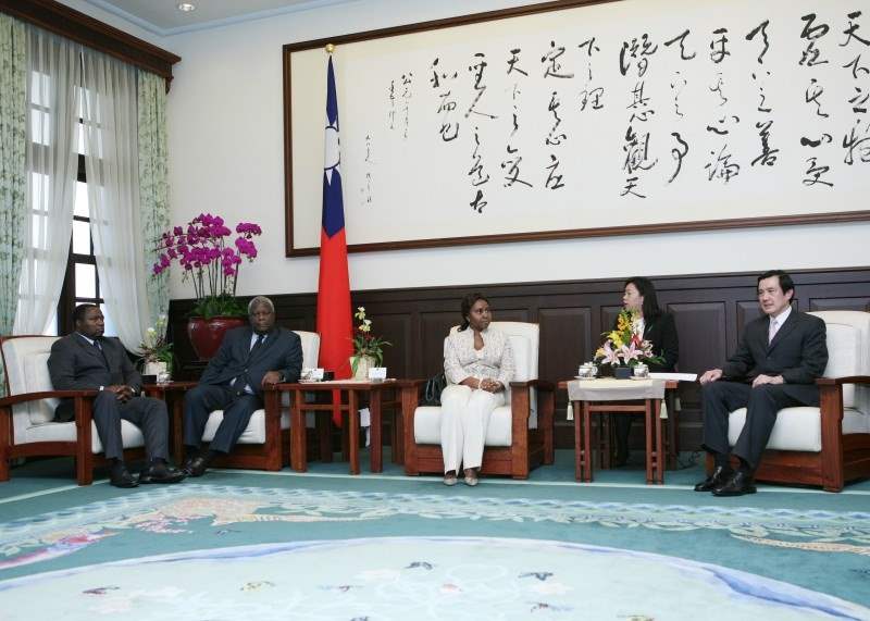 馬英九總統今天下午在總統府接見甘比亞共和國、聖露西亞暨史瓦濟蘭王國駐聯合國常任代表Susan Waffa-Ogoo、Donatus St.Aimee及Joel Musa Nhleko,對訪賓來台訪問,代表我國政府與人民表達最高的歡迎與感謝之忱。
