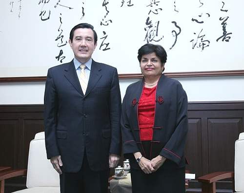 馬英九總統今天上午在總統府接見亞洲協會(Asia Society)會長丁文嘉博士(Vishakha Desai),代表我國政府與人民,對訪賓遠道而來,表達誠摯的歡迎與感謝之意。