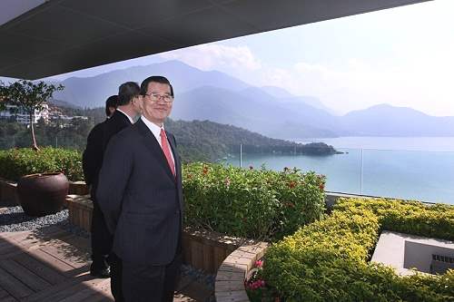 副總統表示,日月潭是台灣著名景點,九年前的921大地震重創了日月潭地區,當時他正好是行政院長,看到日月潭災後情景,十分痛心,立即指示政府相關部門,著手推動這個觀光勝地的重建,因此他對日月潭有特別的感情。今天前來參加酒店開幕典禮,看到這個台灣最具代表性的旅遊景點,歷經多年的重建後,終於恢復昔日的風貌,感到十分欣慰。