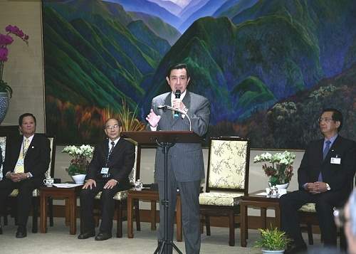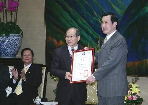 馬英九總統今天下午在總統府接見社團法人「國際生命線台灣總會」李正雄理事長暨理、監事幹部,接受該會李理事長呈獻「榮譽理事長」證書,並致詞感謝該會長期以來的付出與貢獻,也期許該會繼續努力降低自殺率,讓社會更祥和、美好。