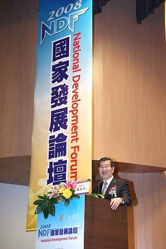 蕭萬長副總統今天上午參加由台灣客壇協會所舉辦的「2008 NDF國家發展論壇」,除肯定客家鄉親與精英對國家發展所做的貢獻,並預祝論壇順利圓滿。