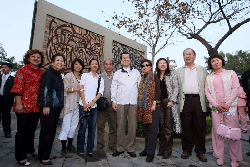 蕭萬長副總統與夫人朱俶賢女士今天下午前往士林官邸公園參觀吳炫三世界當代藝術海外十年傾心鉅作雕塑展,對大師的傑出作品,表達肯定與讚賞。
