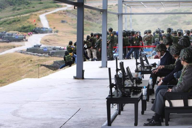 在此,要特別謝謝部長、總長、各軍司令在準備這次聯合演習所付出的努力。前一陣子的漢光演習,避免了不必要且與實際戰場有相當距離的操演,我們不能為了好看而做一場演習的大秀,這樣反而不符合建軍備戰誠懇務實的態度,而且有時會引起媒體的誤會,以為兩岸和解就不準備演習了,完全不是這樣,我們演習照做,但不需要特別安排為了好看、為了表演而操作的項目,今天的安排是國軍平常演習、例行演習訓練的一部分,我們讓它展現出來讓大家瞭解,碰到有類似的情況,我們的陸戰隊一樣能透過逆登陸預定的時間與方法,有效摧毀敵人的攻擊,從這裏我們可以看得到,在整個防衛作戰當中,這些工作都是每天要操演的,熟才能生巧,特別希望國軍各級幹部都能把握這個原則,把我們的戰力維持在顚峰狀態,一旦有任何狀況,都能有效保衛台灣的安全,讓人民安居樂業。