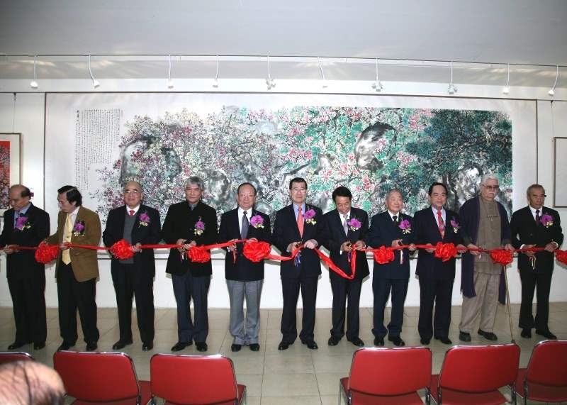副總統說,蕭教授與他雖是同宗,成就也讓他與有榮焉,但蕭教授個人的努力則更讓人敬佩,因為在藝術道路上,他並未師承何人,完全是自學,自創一格,才有今天的成就。30多年來,蕭大師對花卉相當有研究,尤其是梅花,每到寒冬嚴雪時,他就走遍大南江北,為的是研習梅花的神態,因此他所畫的梅花神韻讓人驚歎,值得大家好好賞析。