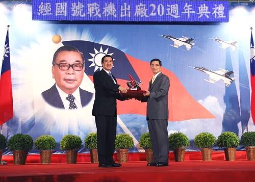馬英九總統今天下午前往台中漢翔沙鹿廠區出席經國號戰機出廠20週年典禮,對漢翔公司在發展我國航太事業所作的付出與努力,表達高度肯定之意。