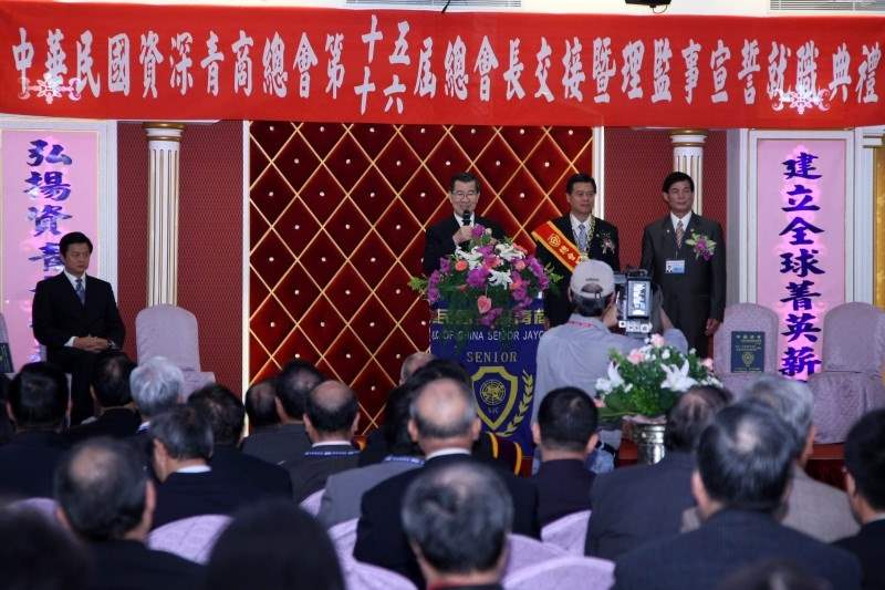 副總統致詞時表示,能夠在新舊交替之際親自來見證此一歷史時刻,相當榮幸。他指出,青商會原本就是青年服務社會的社團,訓練自己服務人群,每一個人都要有熱忱,來參與社會公益活動,而且這股熱情不會因年齡而有所影響,雖然青商會規定超過四十歲者就不能成為會員,但基於經驗一定要傳承與累積,因此成立資深青商會,為社會服務再做出貢獻,延續對社會的承諾。