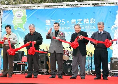 副總統首先向大家祝賀新年快樂,他表示很高興能在民國98年的元旦來到墾丁,參加墾丁國家公園管理處25週年慶,向墾丁國家公園說聲生日快樂。