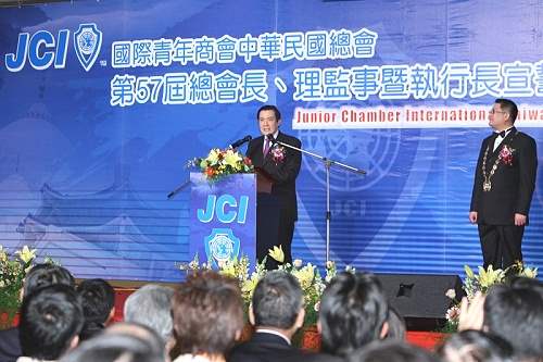 馬英九總統今天下午出席國際青商會中華民國總會第57屆總會長、理監事暨執行長宣誓就職典禮,並以韓語、日語及西語向與會的國外來賓致意。