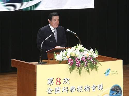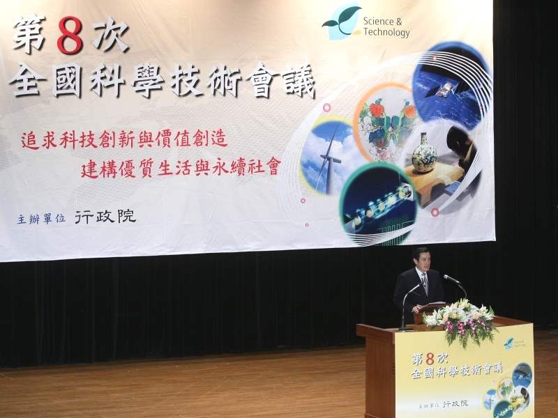 馬英九總統今天上午在台北市公務人力發展中心參加由行政院主辦的全國第8次科學技術會議,預祝會議順利圓滿成功,並期許與會人員集思廣益、全力以赴,把國家未來科技發展的機會與挑戰充分釐清,找出一條正確道路,讓科技不但造福我們的社會,也可以幫助我們度過經濟難關。