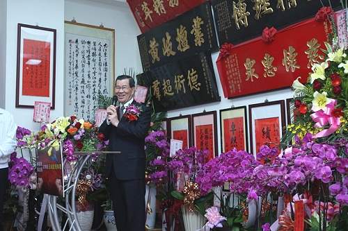 副總統致詞時表示,他每次來到彰化就備感親切,因為他是彰化女婿,而在接到林醫師與葉前部長邀請函時他原本想在開館當天就南下參加,但因為另有要公,因此特別安排今天的行程,除了致賀,也與彰化鄉親好友敘舊。