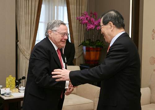 蕭萬長副總統今天上午在總統府接見美國在台協會前理事主席暨台灣大中華基金董事羅大為(David Laux),對該基金為外商建立投資台灣管道,表達感謝之意。