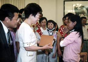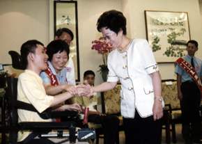 中華民國第五屆傑出身心障礙者尊長「大愛獎」得獎人「王顯軍、彭秀英、王天耀(子)」、「李天佑、王美鷺、李致仁(子)、李致維(子)」、「王金長、王嚴春、王麗玲(女)、王淑惠(女)」、「鄭萬泉、鄭高素娛、鄭茹穗(女)」、「劉慶良、劉蔡鴛鴦、劉清貴(子)」、「謝昌雲、左菊蓮、謝曉婷(女)」、「蘇朝、林鈴慧、蘇柏毓(子)」、「吳蔡美麗、吳佳穎(女)」、「朱唐蔡、朱沛豪(子)」等一行,下午由內政部次長許應深陪同,前來總統府接受副總統的道賀與嘉勉。