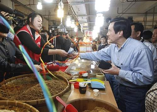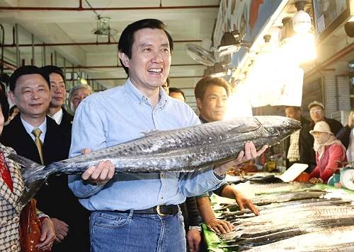 馬英九總統今天下午訪視嘉義布袋漁市場,並購買草蝦、土魠魚及魚鬆等產品,致贈嘉義縣東石鄉聖心教養院。