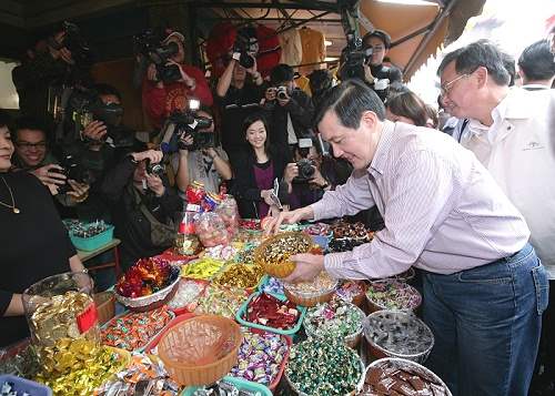 中午,總統南下高雄縣鳳山市品嚐地方小吃—鹹米苔目,並在此使用首張消費券,以身作則鼓勵民眾在小商家使用消費券。隨後,總統分別前往高雄縣市的天公廟、三鳳宮及義民廟上香祈福,受到南部鄉親的熱情歡迎。總統也前往高雄市素負盛名的年貨大街—三鳳中街購買開心果、魷魚絲等年貨,與現場採買的民眾熱情互動,並將採購的食品在出席義民廟廣場前舉辦的「寒冬送暖溫馨關懷情活動」中,致贈給家扶中心、淨覺育幼院、內政部南部兒童之家、紅十字會等社福團體。