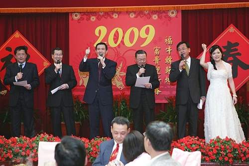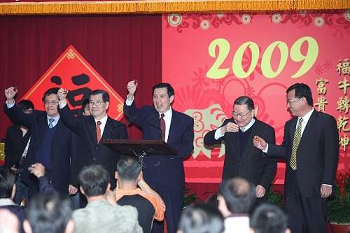 馬英九總統與蕭萬長副總統今天晚間參加總統府98年員工春節會餐,並和全體總統府員工舉杯共祝新年快樂。