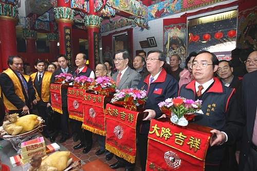 副總統首先前往竹東惠昌宮上香,祈求國泰民安、風調雨順,並向現場民眾拜年,祝大家順利平安。
