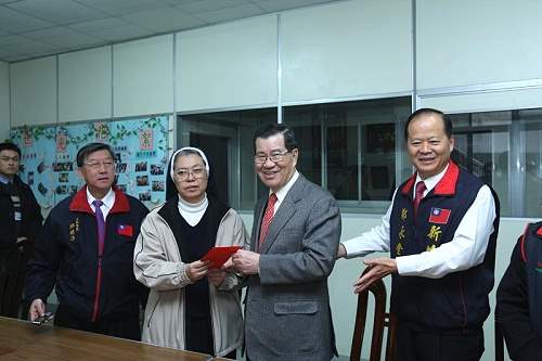 副總統隨後來到世光教養院,除與院內工作人員就社會福利資源短缺等議題交換意見,也訪視院童,並發送紅包。副總統表示,由於經濟不景氣的影響,弱勢團體的資源也隨之減少,但社會上卻有更多需要照顧的人,需要大家伸出援手,因此他決定將自己的年終獎金捐贈出來給幾個團體,以協助有需要者。他並特別選在農曆春節前夕來到世光教養院,送出第一筆捐款伍萬元,希望達到拋磚引玉的效果,讓更多人注意到像世光教養院這樣的地方性社福機構。