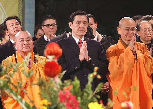 結束晚會行程,總統隨即前往法鼓山參加「祈願好願在人間-2009法鼓山除夕聞鐘聲祈福法會」,除在大殿禮佛,也在法華鐘樓與民眾一同繞鐘、祈願,為國家及國人祈福,並致詞。