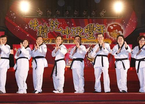 副總統指著身上的跆拳道服表示,這樣的打扮代表了今年台北主辦2009年聽障者奧運,這是國際間很盛大的活動,相當不容易,加上台北燈節,可說是替台北以及中華民國(台灣)寫下了新的希望。