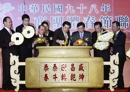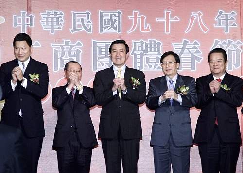 馬英九總統今天下午參加由全國工業總會、商業總會、工商協進會、中小企業協會、電機電子工業同業公會、外貿協會等六大工商團體聯合舉辦的春節聯誼會,向與會人員拜晚年,祝賀大家新年快樂。