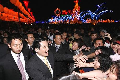 馬英九總統今天晚間前往宜蘭出席2009台灣燈會開燈儀式,並應邀致詞,隨後與民眾一同參觀主燈區、祈福燈區、生態燈區及歡樂燈區,受到賞燈民眾熱情的歡迎。