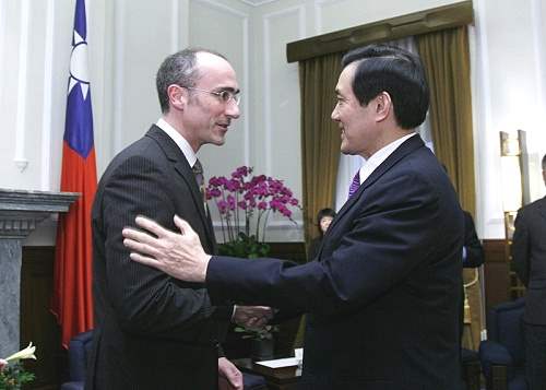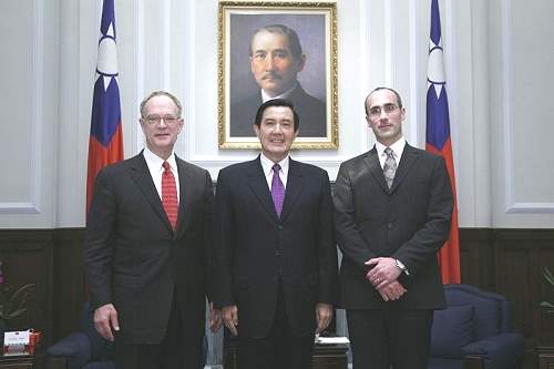 美國企業研究院院長布魯克斯暨前任院長狄繆思,下午由我外交部次長夏立言陪同,前來總統府晉見總統,國安會秘書長蘇起也在座。