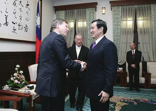 瑞典首席國會監察使梅林下午由監察院院長王建煊及監察委員趙榮耀陪同,前來總統府拜會總統,國安會秘書長蘇起也在座。
