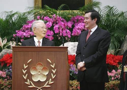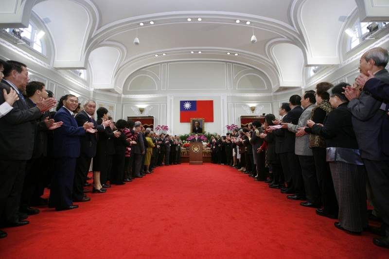新同盟會代表下午由會長許歷農帶領,前來總統府晉見總統,總統府副秘書長賴峰偉也在座。