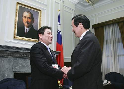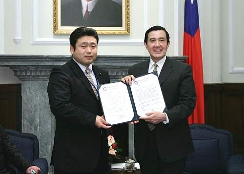 馬英九總統今天上午在總統府接見日本自民黨石川縣議員森祐喜,對訪賓來台訪問,代表我國政府與人民表達最高的歡迎與感謝之忱。