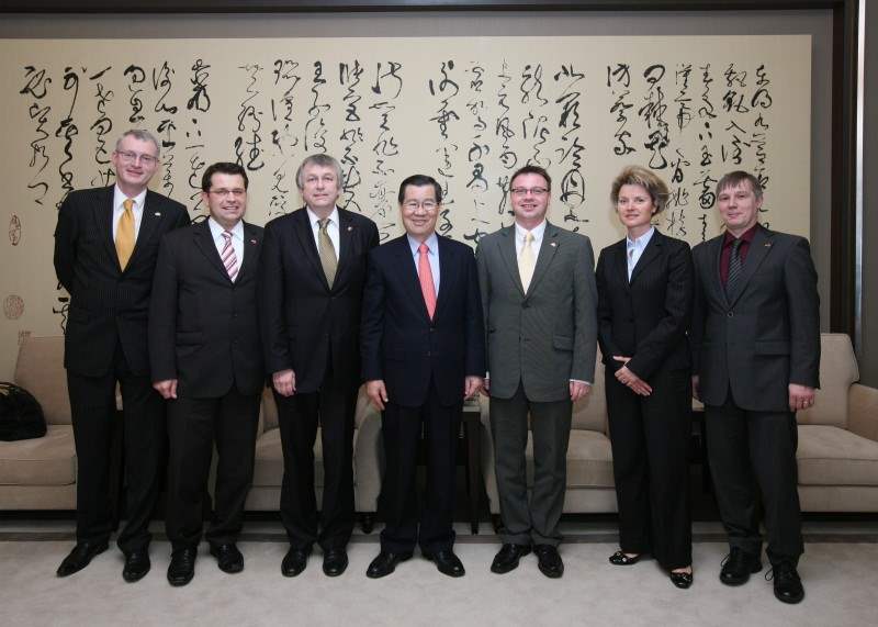 德國國會社民黨國會議員代表團主席ENGELBERT WISTUBA、國會議員MAIK REICHEL、MARKO MUHLSTEIN等,上午由外交部次長林永樂、德國在台協會處長歐芮(BIRGITT ORY)陪同前來總統府晉見副總統。