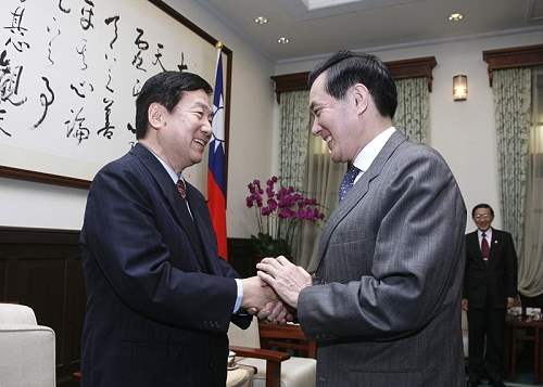 旅日圍棋名人林海峰夫婦,上午由外交部次長林永樂陪同,前來總統府晉見總統,國安會諮詢委員楊永明也在座。
